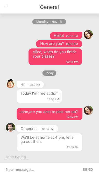 Benefit from a realtime group chatting or private chats letting you keep in touch with your family members whenever needed 24/7.